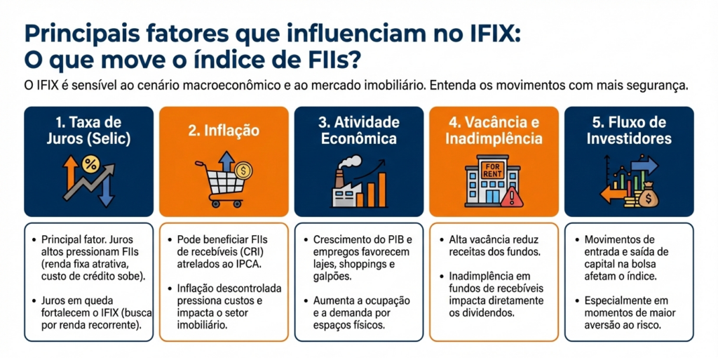 O IFIX é altamente sensível ao cenário macroeconômico e às condições específicas do mercado imobiliário. Entender esses fatores é fundamental para interpretar seus movimentos com mais segurança. Confira: